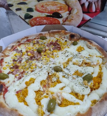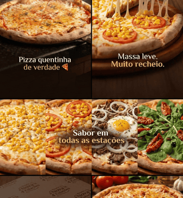 Na Pizzaria Nova 4 Estações, cada pizza é feita com carinho no forno a lenha, trazendo o sabor artesanal que você merece.